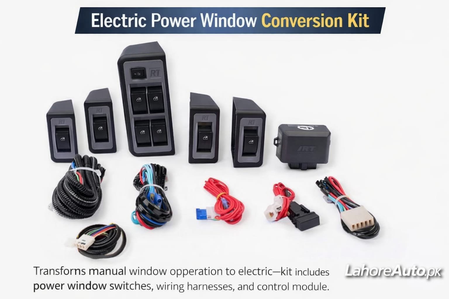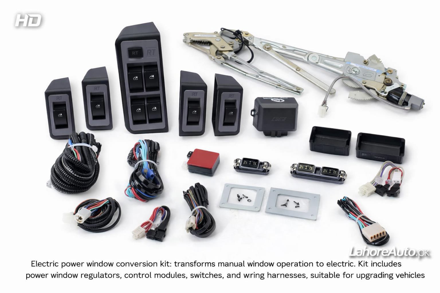 Electric Power Window Conversion Kit – This complete set upgrades manual car windows to automatic operation. It includes window regulators, motors, control modules, switches, and wiring harnesses. Easy to install, smooth performance, and suitable for most vehicles